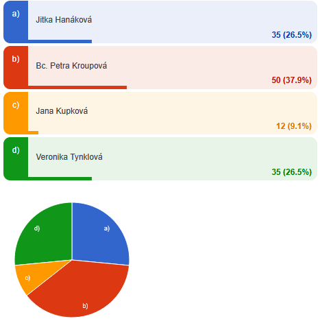 1. Bc. Petra Kroupová - 50 hlasů (37,9 %)
